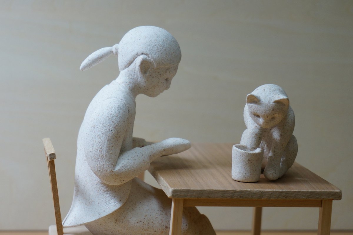 猫69景 美術が好きで特に粘土と彫刻刀が好きな猫 ミヌー 猫