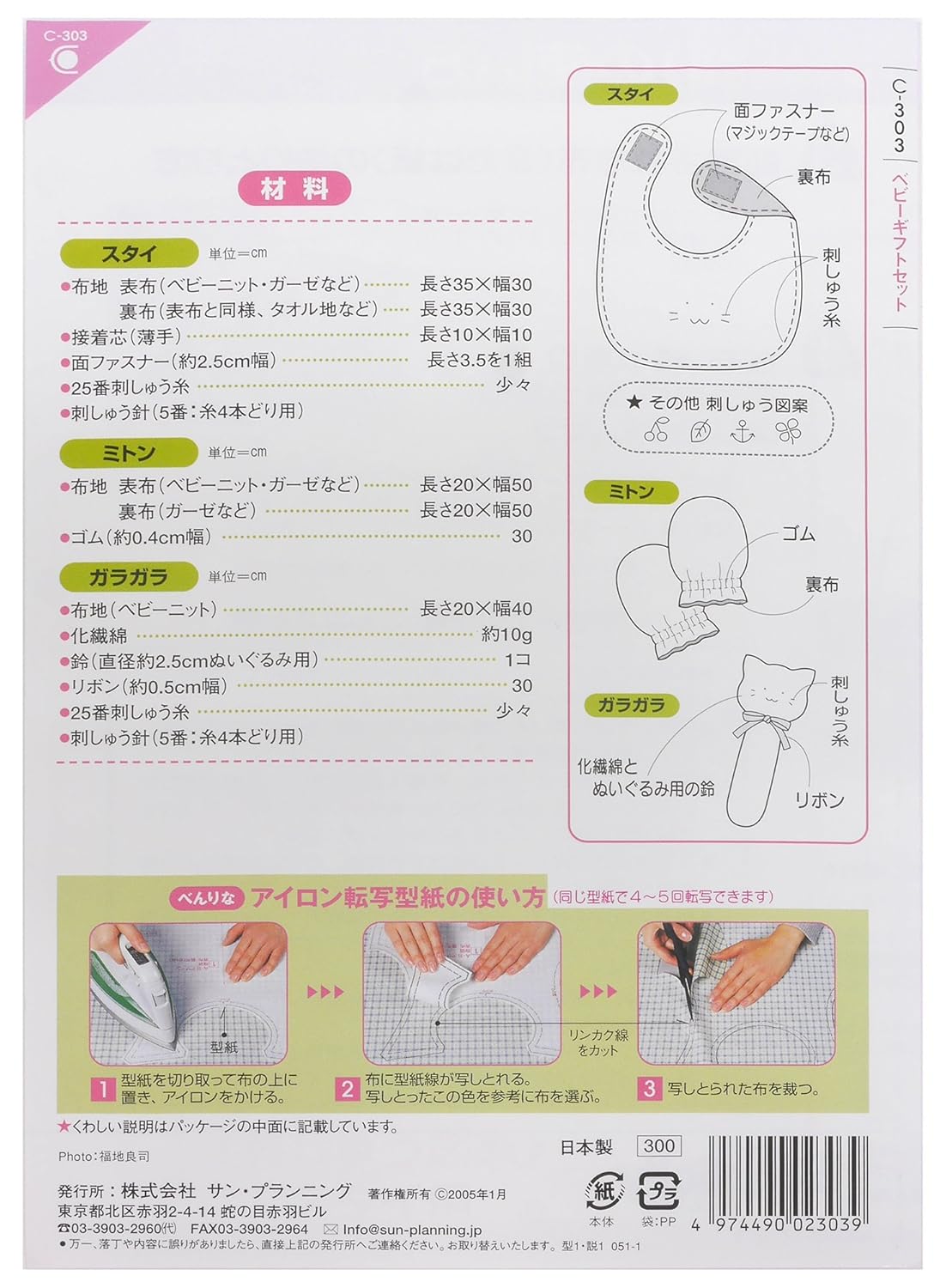 Amazon 型紙 パターン Craft楽園 ベビーギフトセット C 303 型紙