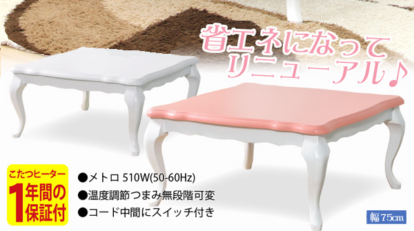 ポイントup5倍 ねこ脚こたつテーブル フローラ 90x60cm 11