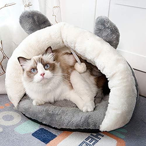 Asiso 猫 ベッド 冬 ドーム ハウス ホワイト グレー ボール付き 寝袋