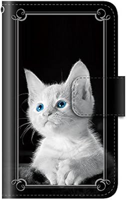 Amazon 猫 モノクロ 写真 手帳型 02 アイカラー 白猫 らくらく
