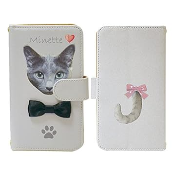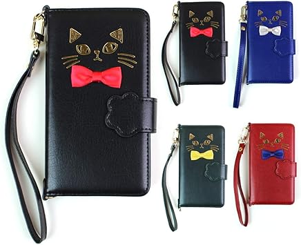 Amazon モシモシ スマホケース 全機種対応 猫型 ネコ リボン 手帳型
