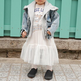 送料無料 2カラー ホワイト 白 女の子 チュール ワンピース デニム
