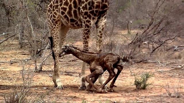 動画 生まれたばかりのキリンの赤ちゃんの奮闘 ナショナルジオ