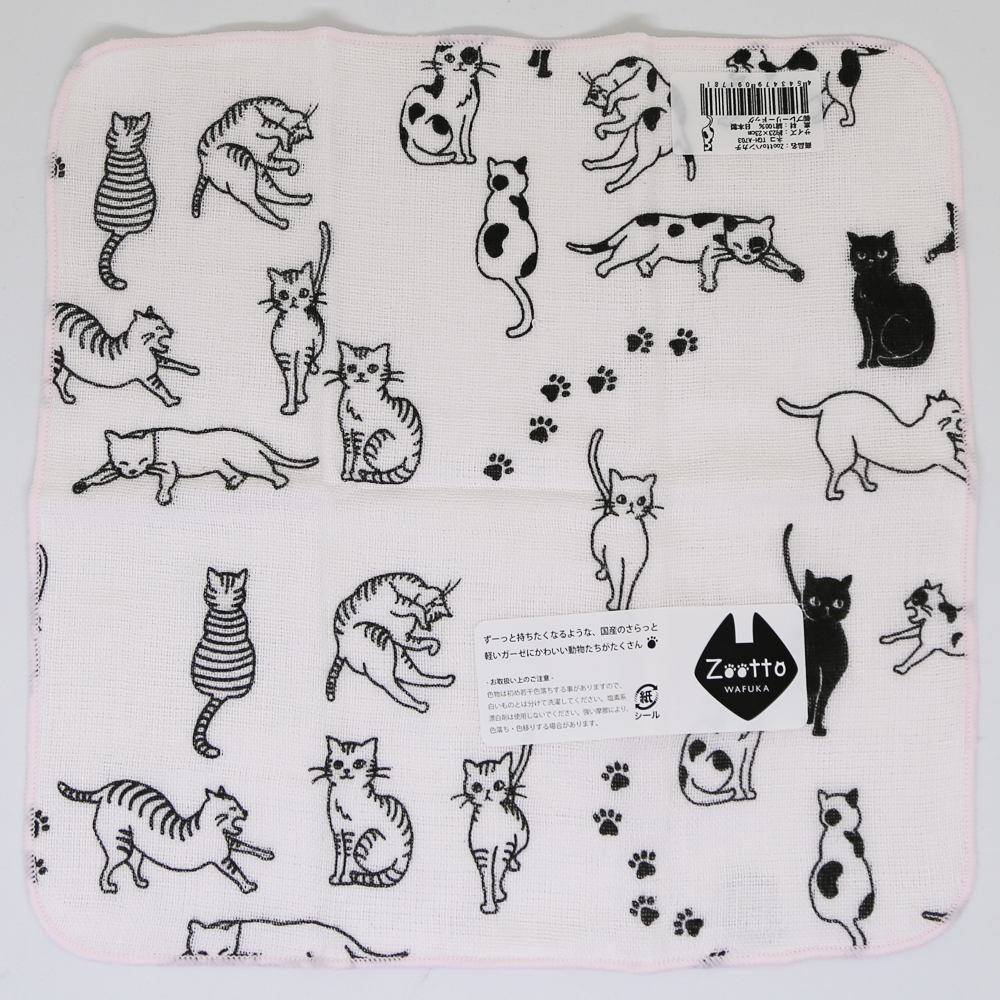 Wasabi すずねこ ガーゼタオルハンカチ 日本製 猫雑貨 猫グッズのお