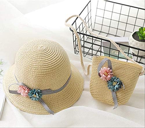 人気急上昇 ツーピースsetsbaby女の子子供わら美花帽子ベビー太陽帽子女の子夏キャップビーチバイザー帽子麦わらバッグワンサイズ