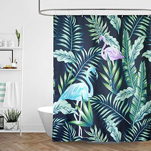 セール品 シャワーカーテン 北欧風 防カビ 防水 目隠し 速乾 厚手 高級 ポリエステル生地 120x150cm 間仕切りリング付き バスカーテン 黒 フラミンゴ柄 浴室 お風呂カーテン 遮像 動物