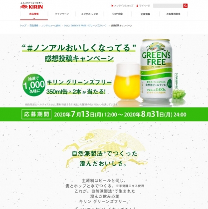 キリン グリーンズフリー 澄んだおいしさ 実感キャンペーン