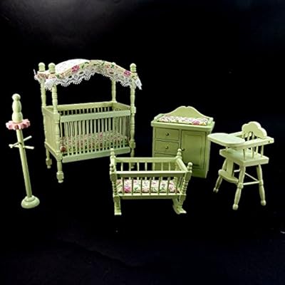 Amazon 木製ミニチュア家具セット 赤ちゃん寝具セット 緑 Dh 031