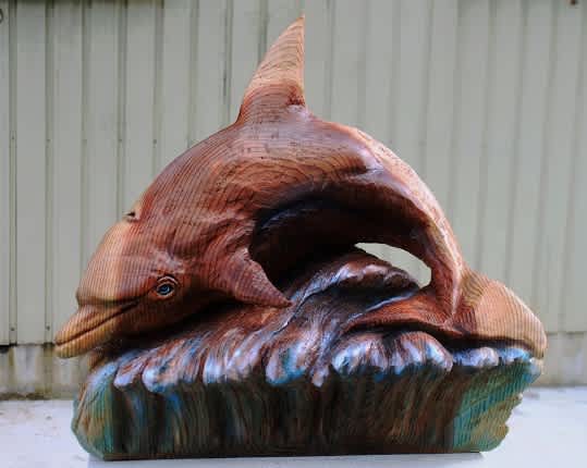 作品 イルカの壁掛け Chainsaw Art Japan ケイジの仕事記録