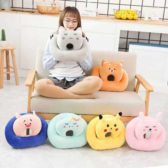 玲珑布洛羽绒棉卡通动物暖手抱枕午睡枕可插手枕暖手捂毛绒玩具生日礼物