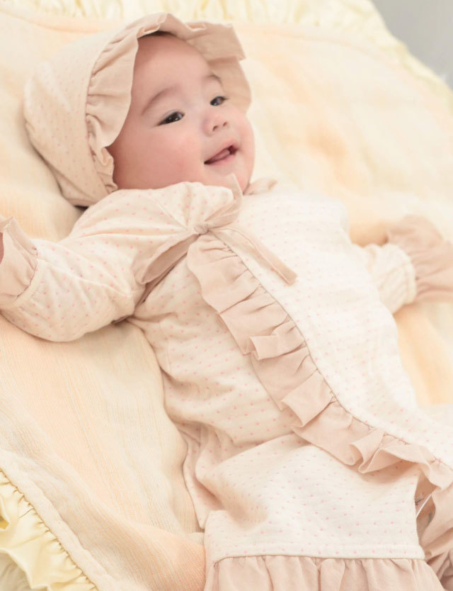 日本製 ふっくら3重ガーゼフリルベビードレス ボンネットセット 退院