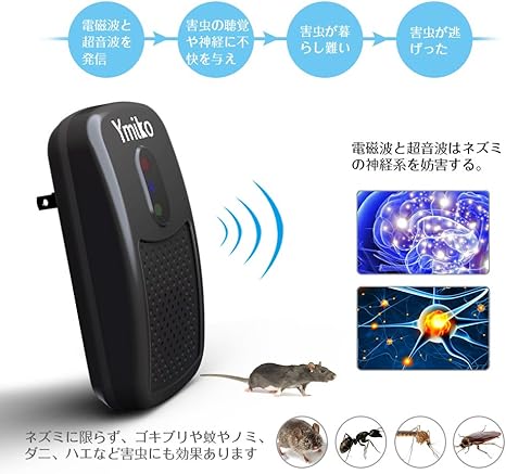 Amazon ネズミ駆除機 Ymiko超音波ネズミ撃退器 最新版 無毒 安心
