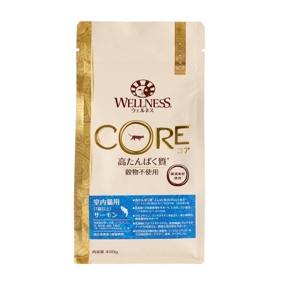 送料無料 ウェルネス 穀物不使用 室内猫用 1歳以上 サーモン 400gの