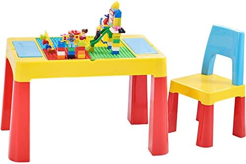 Rjwqkj 子ども用テーブル 椅子セット 125ピースブロック付 収納 イス